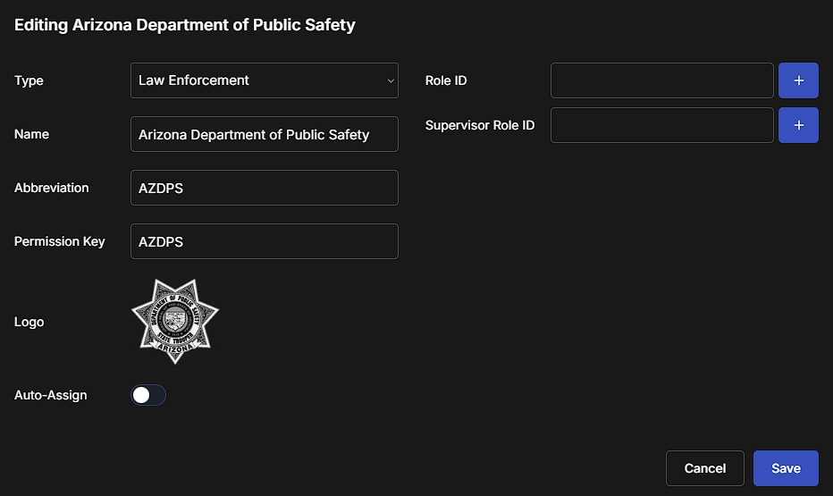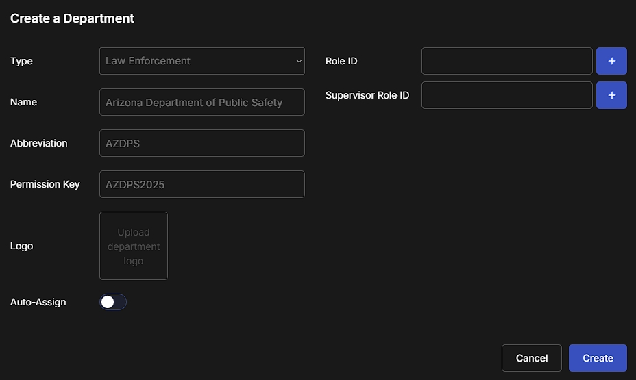 Role ID and Supervisor Role ID require the Discord role ID from your community's Discord server. In order for this feature to work, the Imperial bot will need to be invited to your Discord Server.