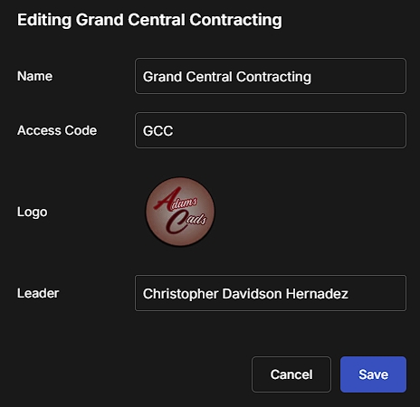 Required fields: type, name, abbreviation, and logo. Permission key is not required
